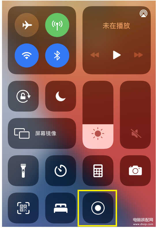5、返回系统主界面,调出“控制中心”快捷栏,可以看到“屏幕录制”按钮,点击即可。