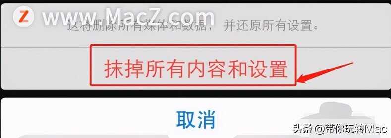 最后再点击“抹掉所有内容和设置”即可。最后,在还原成功以后,再使用匹配的苹果手机与它重新配对连接就可以了。