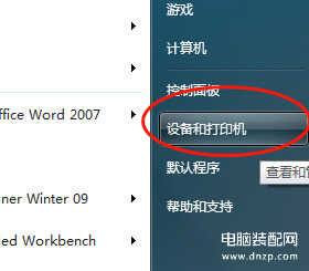 2.在开始菜单上,找到并单击“设备和打印机”。