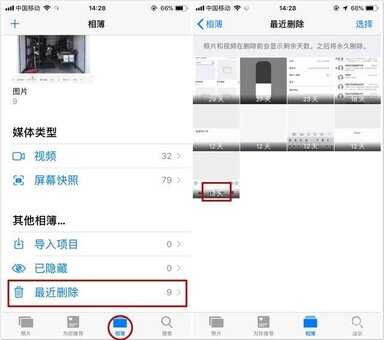 苹果手机相册里面有一个【最近删除】功能,里面有近期30天内删除的照片,我们可以在里面把30天内所删除的照片在这里恢复到相册里面。打开手机【照片】,,拉到最低端有个【最近删除】,点开找到想要恢复的照片,然后打开照片,点击右下角【恢复】按钮进行恢复即可。