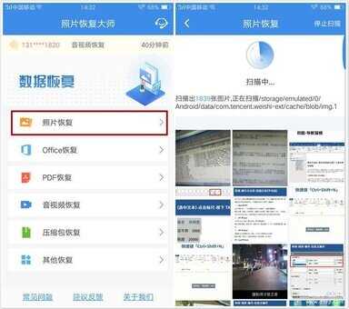 打开手机照片恢复大师,点击【照片恢复】,这个软件就会扫描手机里曾经删除掉的照片。