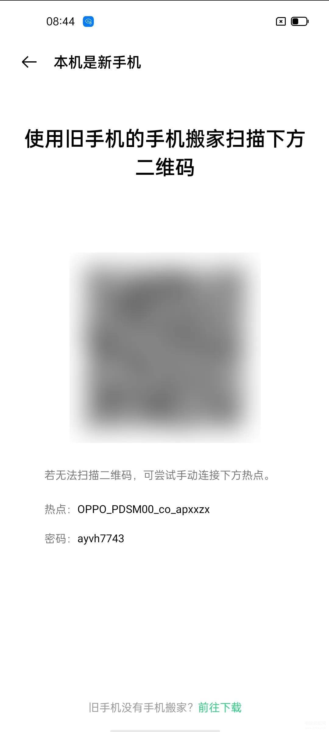 5、然后在旧手机上点击“本机是旧手机”,就会出现扫码界面