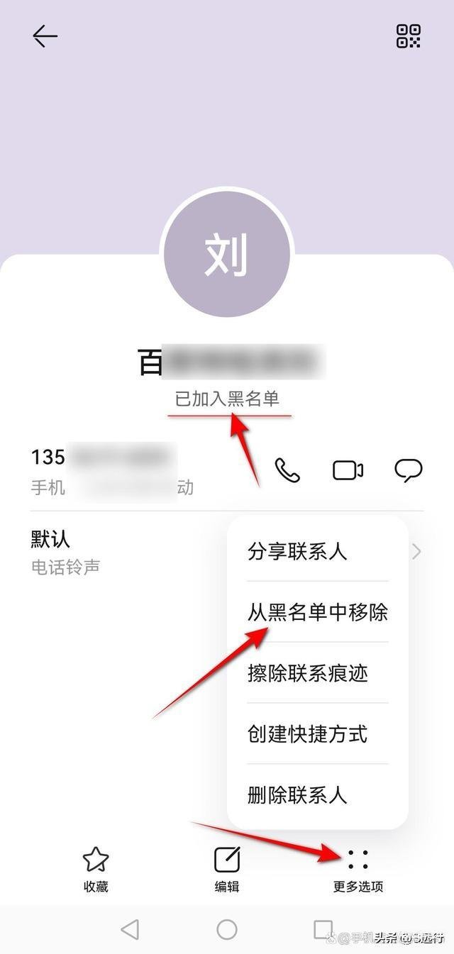 手机号拉黑了可以通过将手机号从黑名单中移除拉回来,有两种方法实现,方法一是:打开手机管家点击“骚扰拦截”-“拦截规则”-“黑名单”长按需要拉回来的手机号,勾选需要拉回来的手机号点击“删除”,勾选“同时恢复信息”,点击“移除”即可。方法二:在手机联系人列表,点击打开已加入黑名单的联系人,点击“更多选项”-从黑名单中移除”即可。