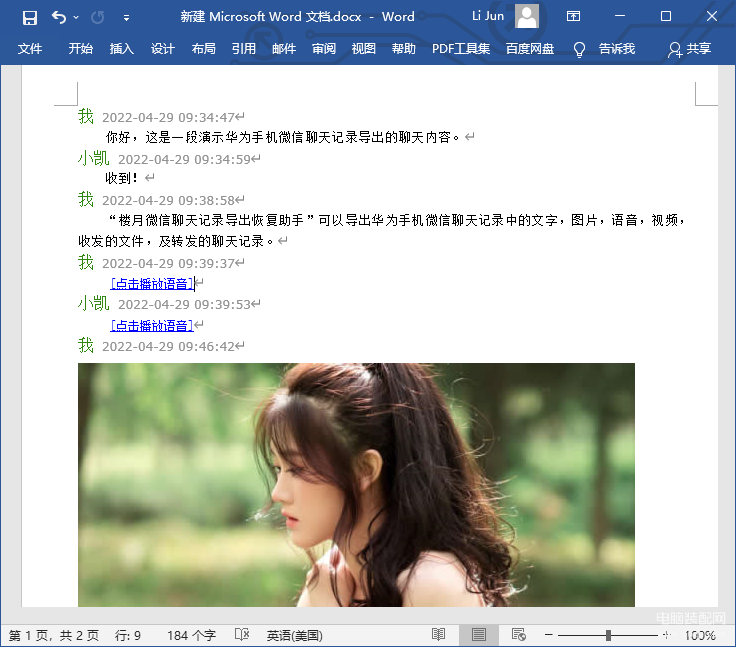 16,双击打开msg.htm,可以看到聊天记录中的所有内容,包括文字,图片,语音,视频,其中语音及视频也可以直接在这个页面上点击进行播放。