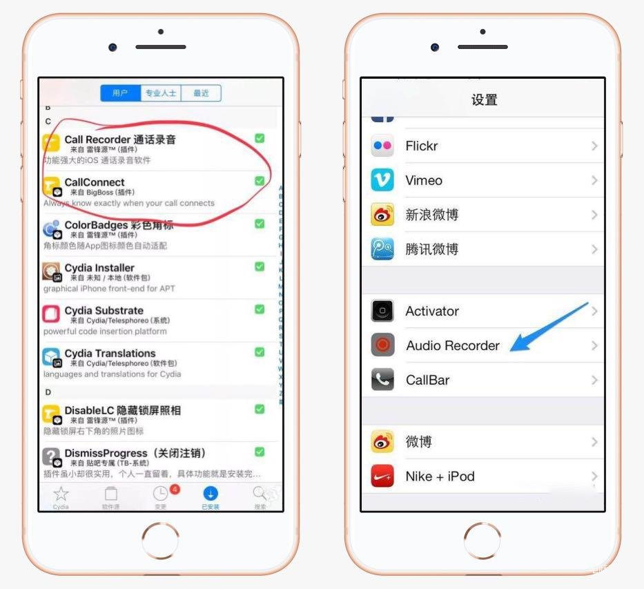 越狱后的苹果手机,可以通过各种第三方插件来实现录音功能,不过即便能够录音,在使用上仍然有诸多不方便。例如Audio Recorder在进行录音之前,会通知对方正在进行录音,提醒对面的朋友保护隐私,至于对用户本身是否好用就不评价了。