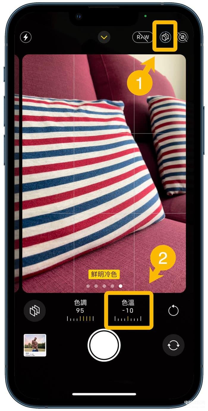 使用iPhone摄影风格方法也很简单,只要利用iPhone内建相机拍摄时,要是发现画面看起来不会黄黄的,直接点选右上角【摄影风格】按钮(重叠图),就能够快速调整色调、色温,立即改善iPhone拍照偏黄或偏蓝问题。