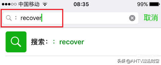 接着弹出要输入名称的窗口,这里输入冒号+recover,也就是:recover,很多朋友把前面的冒号给省略了,导致后续不能进行。
