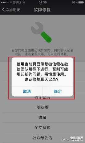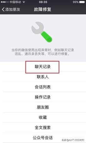 点击搜索之后就会弹出微信故障修复的界面,在第一个选项就是聊天记录,当然后边的选项也是可以修复的,看自己的需要,这里主要说一下恢复聊天记录,直接点击聊天记录选项。