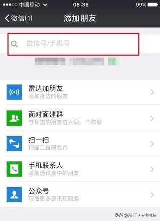 接着就会弹出添加朋友的设置界面,下边有很多添加的方式都不用去管,这里我们要直接搜索一个东西,直接点击上方的搜索栏。