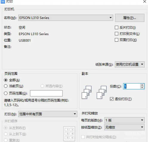 4、点开需要打印的文件,选择文件-打印,选择打印的内容,就可以直接用爱普生打印机打印东西了。