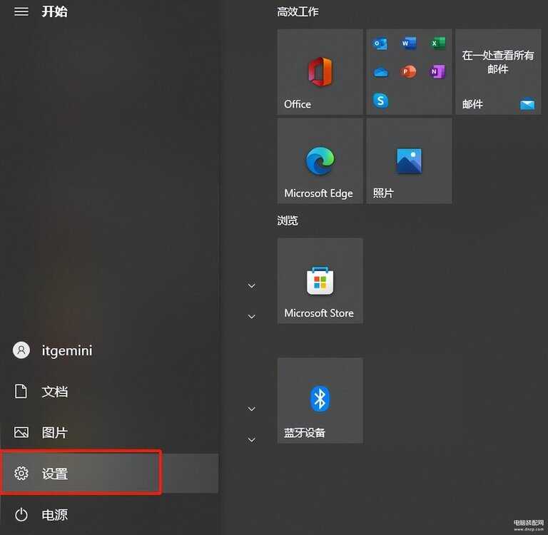 首先点击开始菜单-【设置】。
