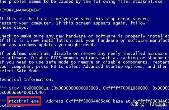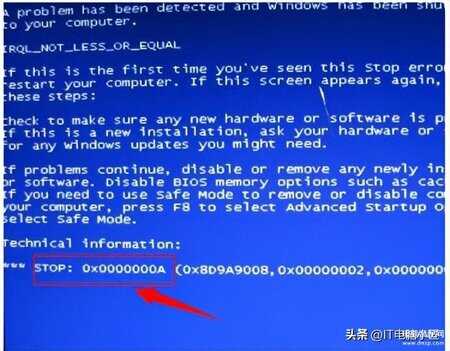 解决办法:开机按F8进入安全模式,将系统进行杀毒;也可以尝试重新插拔内存,一般这代码内存损坏概率不大。