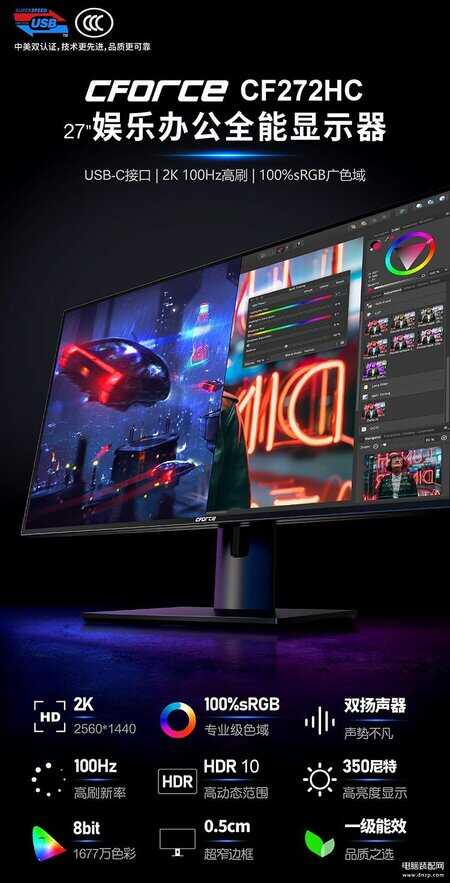 显示器也不是越贵越好,看个人预算。今年CFORCE就推出了Switch玩家适合的27英寸TYPE-C口显示器。
