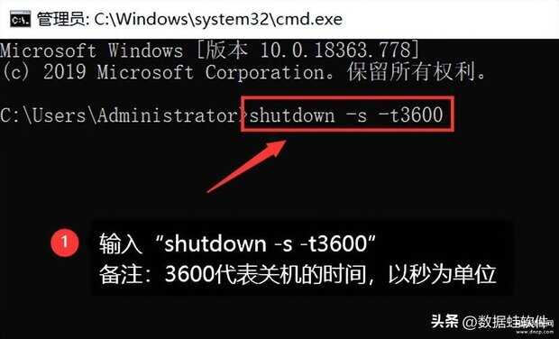步骤2:在弹出的窗口,输入【shutdown -s -t3600】。