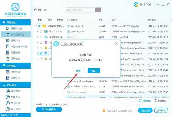 步骤4:将确认无误的文件勾选好,点击“立即恢复”,将文件暂时保存到其它盘中,点击查看即可查看恢复好的文件。