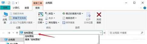 步骤1:打开电脑桌面上的此电脑,在搜索栏中输入“控制面板”,然后按回车进行搜索。