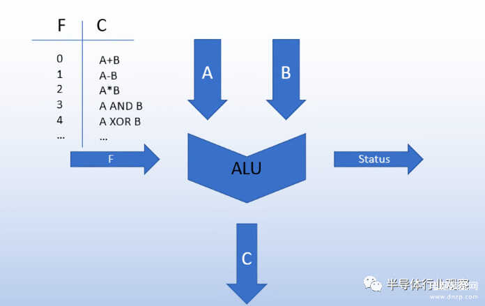 从算术指令开始,因为它们最容易理解。这些类型的指令被送入算术日志单元(ALU)进行处理。ALU是一种通常具有两个输入和控制信号并输出结果的电路。