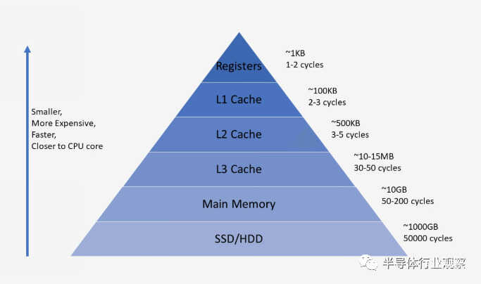 典型的L1缓存可能为数百KB。如果CPU在L1缓存中找不到所需的内容,它将检查L2缓存。这可能约为几MB。下一步是L3缓存,它可能是几十MB。如果CPU在三级缓存中找不到所需的数据,它将进入RAM,最后进入主存储器。当我们沿着每一步走时,可用空间大约增加一个数量级,但是等待时间也增加。