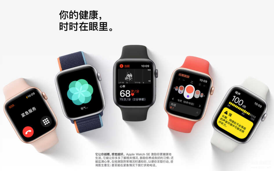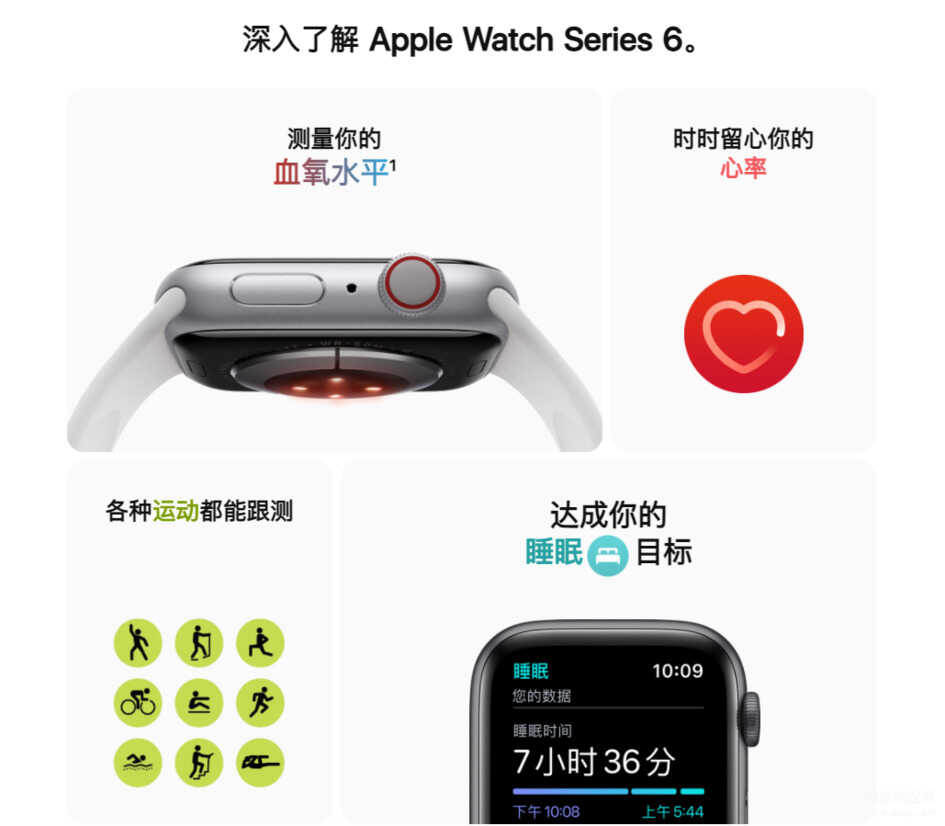 先说说最新,功能也最全面的Apple Watch Series 6,心率监测、ECG、血氧监测全天候高度计一应俱全。其实这一代S6的升级最主要就是加入了血氧监测和全天候的高度计这个功能。那如果你觉得这个功能对于你来说是有需要的,那3000多元的价格确实也值得购买。但是你觉得我也不差这个血氧的话,可以考虑上一代S5的(虽然官网没有)。