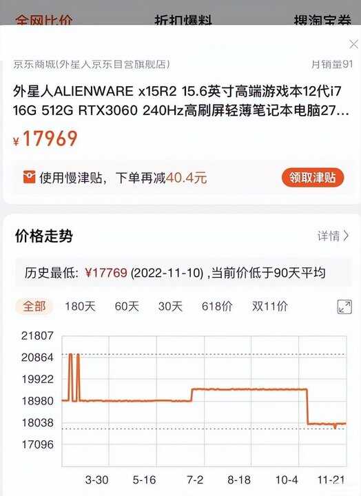 2022年,全面升级过后的 x15 R2,继续用 PC 行业天花板级的顶尖配置,为极客玩家们奉上超乎想象的游戏快感。而且查看价格走势后发现,这款笔记本最近某东旗舰店是接近历史最低价,心痒的小伙伴可以考虑直接入手哦!