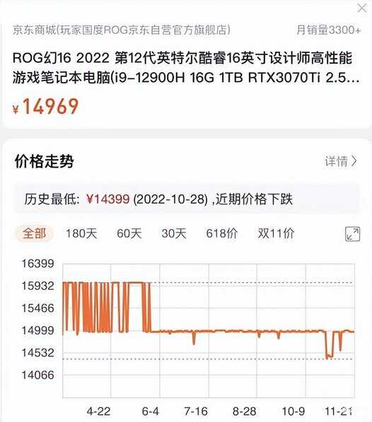 总的来说,对于想在2022购置一款16英寸高性能笔记本的小伙伴们,ROG的这款肯定是不二选择,只是查看了这款笔记本的价格走势,最近没有到非常优惠的价格,建议可以蹲双十二的活动哦。