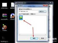 6、在更改图标页,此选择的图标出现在下面的空白列表中,点击一个这个图标,选定之后,点击确定。退出选择图标的页面。