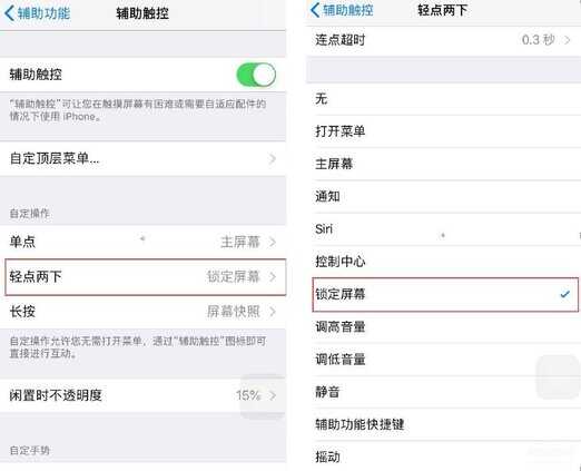 现在辅助触控很智能化,可以自定义操作响应,例如一键锁屏,只需要设置双击锁屏就可以了。虽然安卓早就有了,但苹果还是第一次内置此功能呢。