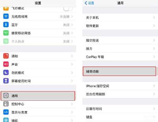 打开手机的【设置】——【通用】向下滑动找到——【辅助功能】
