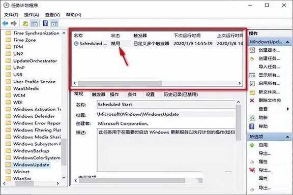 2、随后按照“任务计划程序库 -> Microsoft -> Windows -> WindowsUpdate”这个顺序,把WindowsUpdate里面有的项目都给禁用就可以