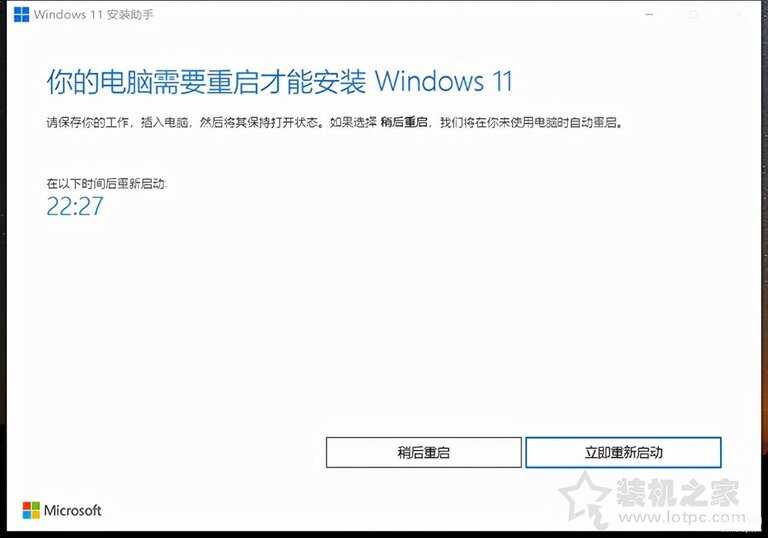 Windows11系统下载完毕之后,我们直接点击“立即重新启动”。