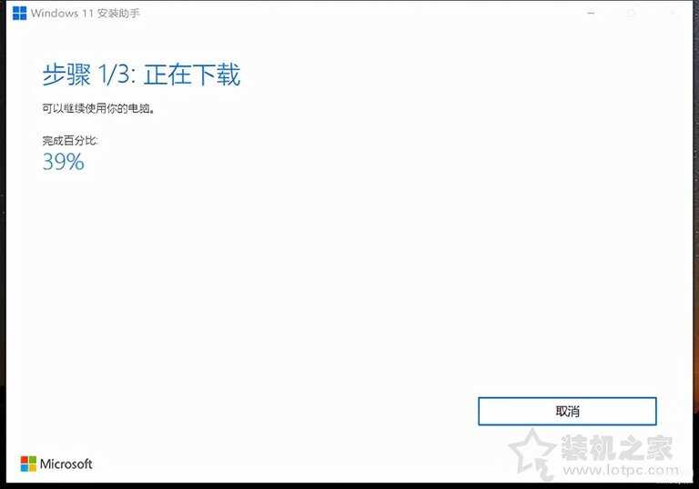 这时候会提示Windows11系统正在下载中,等待完成100%百分比。