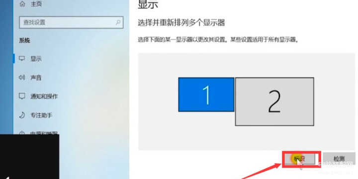 3、然后在左侧点击显示,选择右侧的多显示器设置。
