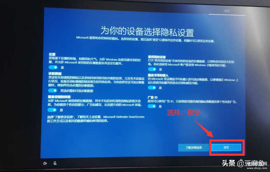 21、为你的设备选择隐私设置,选择【接受】,如下图: