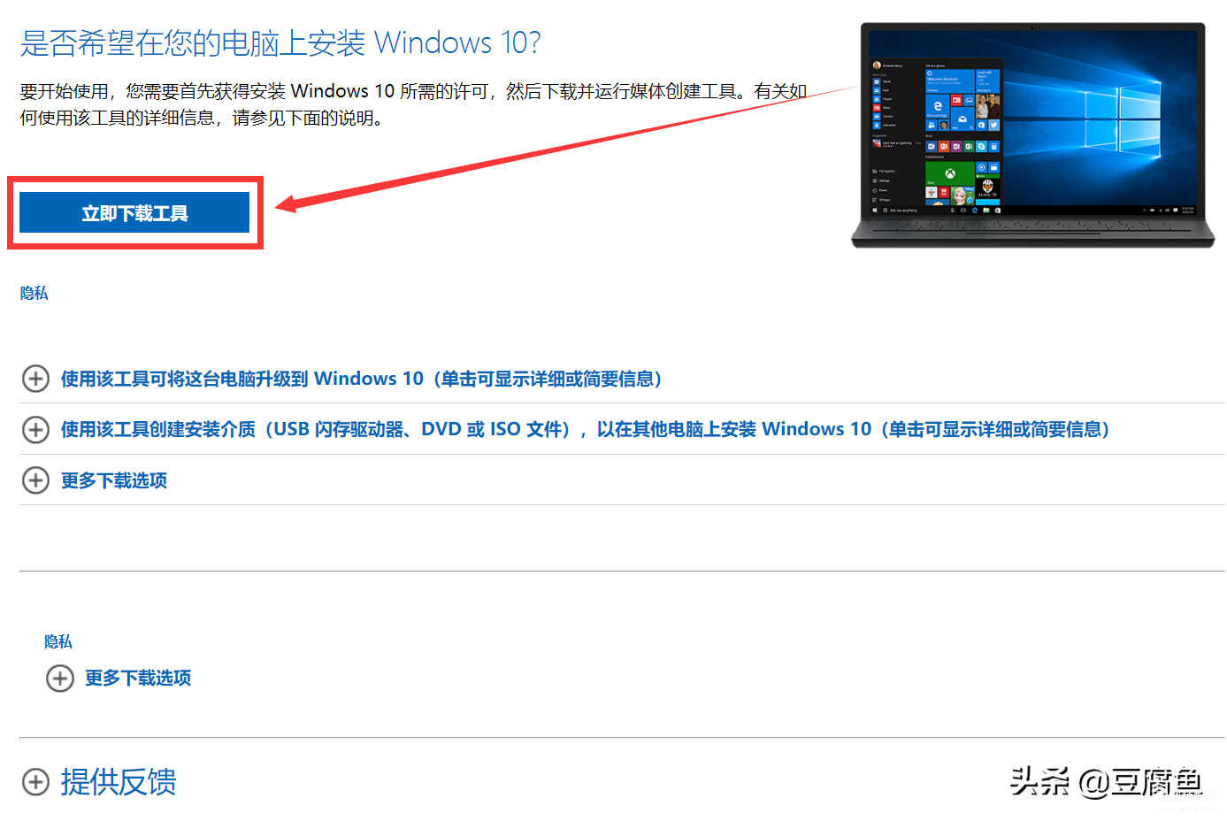 (一) 打开微软下载WIN10网址:(如果网址无法打开,可以下载解压运行附件内的工具)