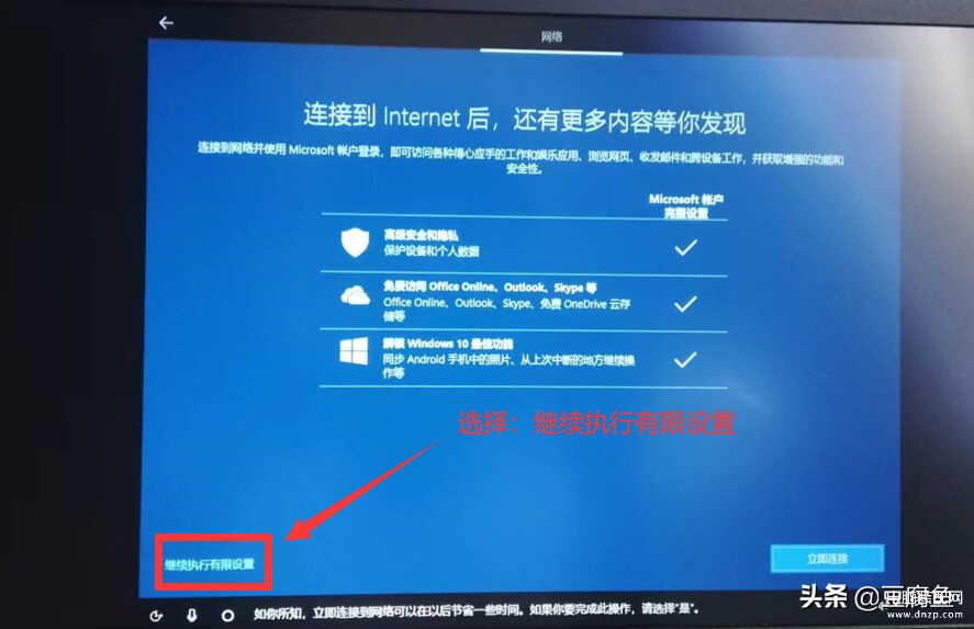 18、连接到 Internet后,还有更多内容等你发现,选择【继续执行有限设置】,如下图: