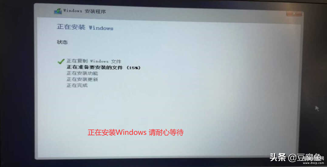 11、正在安装windows ,请耐心等待大约20分钟左右的时间,如下图: