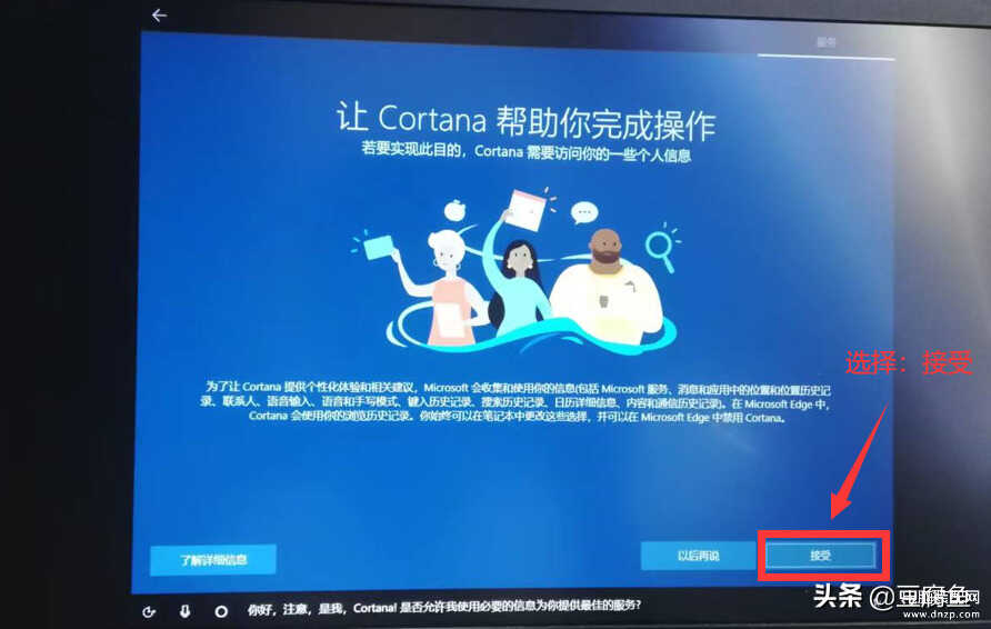 22、让Cortana帮助你完成操作,选择【接受】,如下图:
