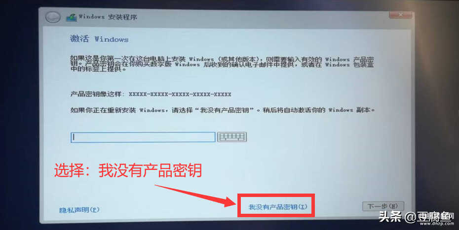 5、激活Windows,选择 【我没有产品密钥】,如下图: