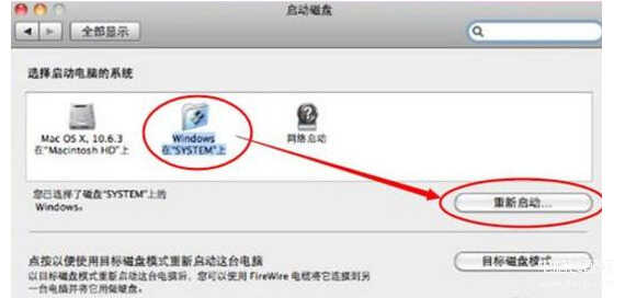 3.在弹出的启动盘窗口中,选择Windows磁盘,然后单击重新启动。
