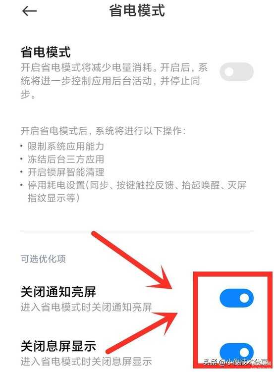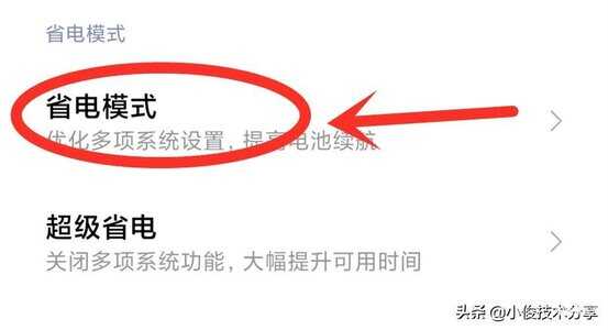 打开这个开关之后,再次往下找到【省电模式】