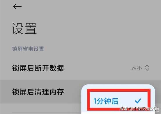 接着把【锁屏后清理内存】设置为【1】分钟
