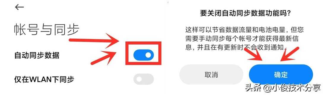 然后将【自动同步】数据开关点击关闭即可!
