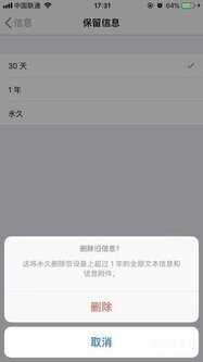 第二步:将信息的保留时间改为30天,之后点击删除按钮。