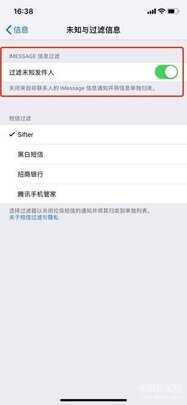 启用系统过滤:如果你非要使用iMessage信息的话,我们也可以启用iOS系统的过滤,设置-信息,打开未知与过滤信息,这样,当我们收到陌生人发送的信息时,iOS就会自动帮我们放到“过滤信息”分组中。
