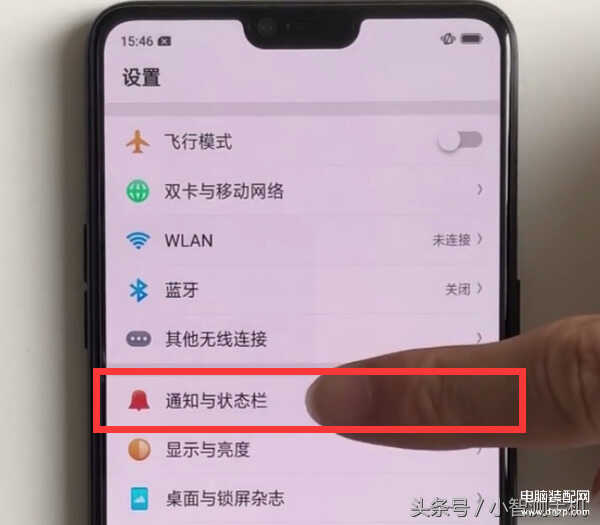 1、首先我们在手机中打开“设置”按钮,随后在设置菜单中点击“通知与状态栏”。