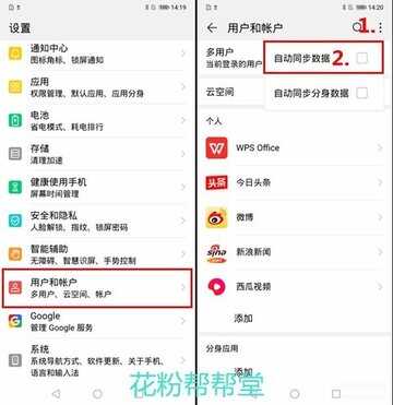 打开设置<用户和账户<点击右上角“三个点”,取消“自动同步数据”,这样不仅可以省电,还能省流量哦~