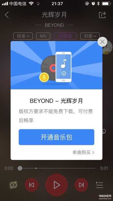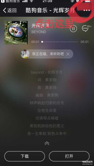第二步:打开酷狗音乐,找到需要下载的付费音乐,我这里以“光辉岁月”为例!