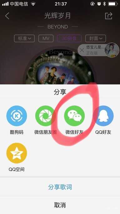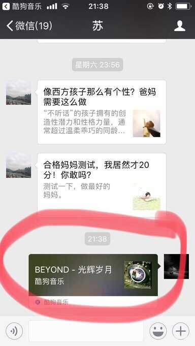 第三步:打开微信,找到刚才分享给朋友的对话框,点击音乐,进入播放界面,如图: