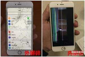 1、外屏碎裂。显示信息图象一切正常,无掉色、无横条纹路、无黑块,触摸功能一切正常。