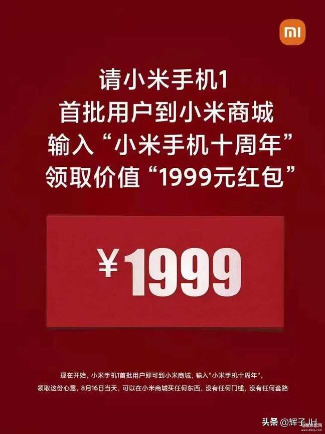 小米的诞生意义非凡,所以小米10周年的时候雷总宣布向第一批购买小米手机的用户,返还1999元的红包,并宣称没有套路,该红包可以在8月16日当天在小米商城购买任何东西。这个红包你拿到了吗?